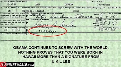 The fact that Obama's birth certificate is a forgery is only part of the problem. The fact it is such a bad forgery with the registrars name spelled U.K.L. Lee, (UKULELE---a joke name) proves that this is a joke to the Obama administration and they are openly giving America the finger (and everyone he doesn't like). But that's nothing new to Obama.....
