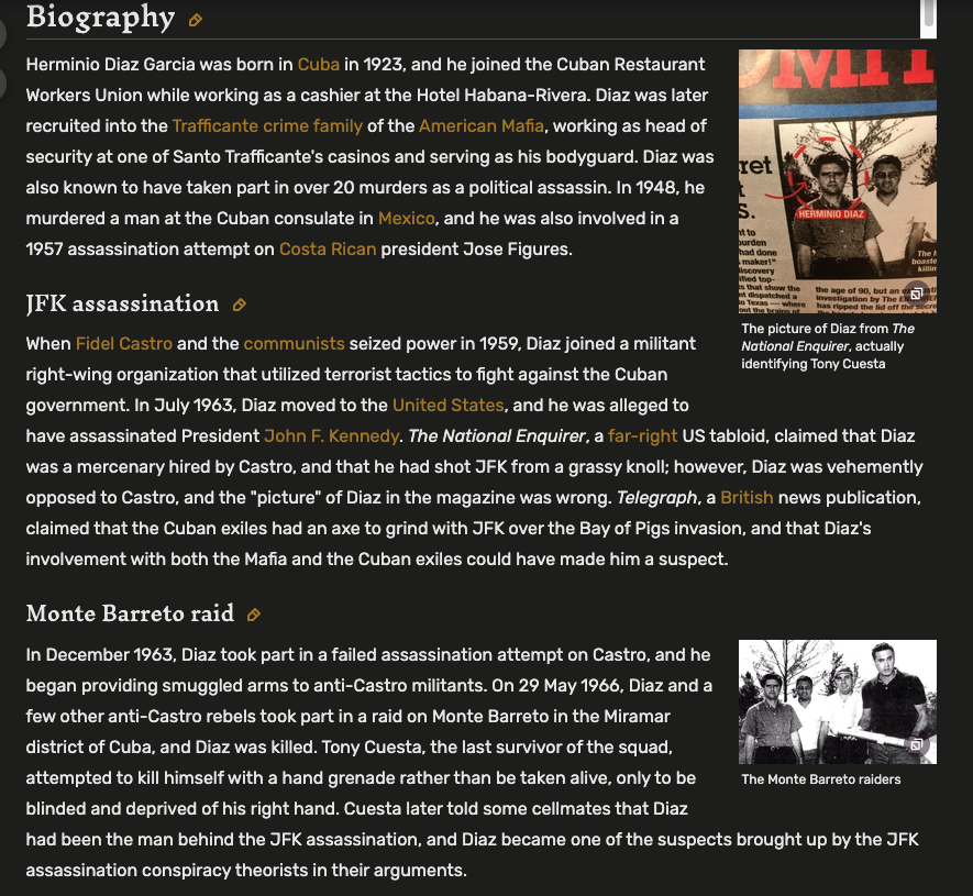 The other roles are a little more blurry....i.e. their positions as to where the shots were fired. But their part in the killing of President Kennedy (with the possible exception of Sartis) is a virtual certainty as well. (BELOW)