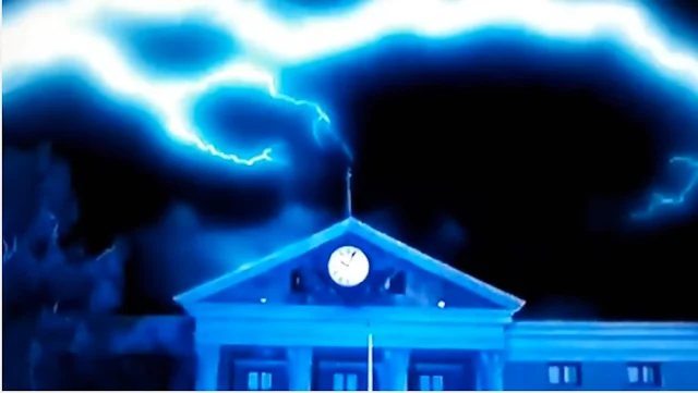 Okay, for Michael J. Fox's DeLorean to go "Back to the Future" the lightening bolt had to hit the "Needle" on top of the "pyramid"