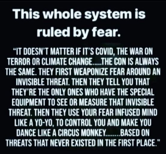 YOU ARE BEING CONTROLLED AND MANIPULATED AND CONDITIONED TO BE IN A CONSTANT STATE OF FEAR!